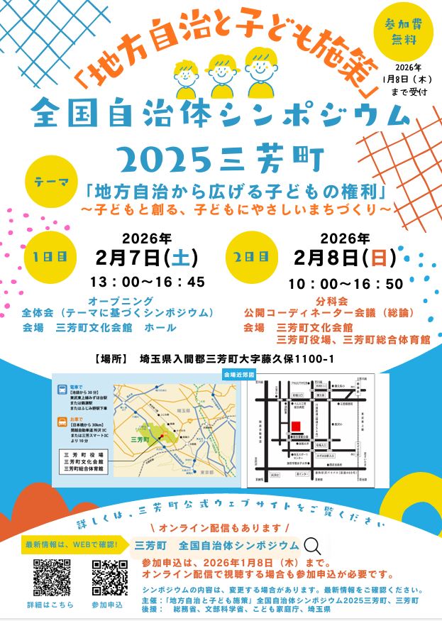 「地方自治と子ども施策」全国自治体シンポジウム2025三芳町:参加者募集中
