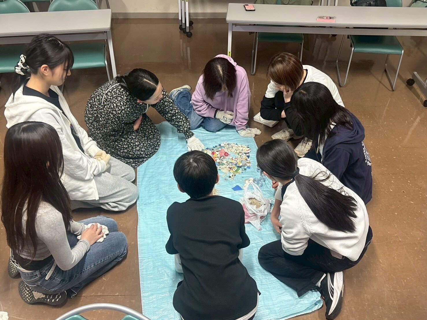 一般社団法人ICERCJapanの方を講師にお迎えし、海洋プラスチック問題についてわかりやすくお話しいただきました。「イルカ・クジラと海の自然の大切さを伝える」というコンセプトのもと、模擬砂浜を使った海洋プラごみ拾い体験などをしながら学べるプログラムとなっていました。「海ごみって何?」「どうやって集めたの?」といった素朴な疑問にも丁寧に答えてくださいました。