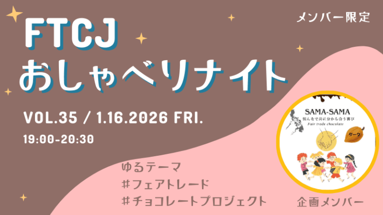 【オンライン交流】FTCJおしゃべりナイト! Vol.35/1月16日(金) テーマ:フェアトレードチョコレート/メンバー限定!